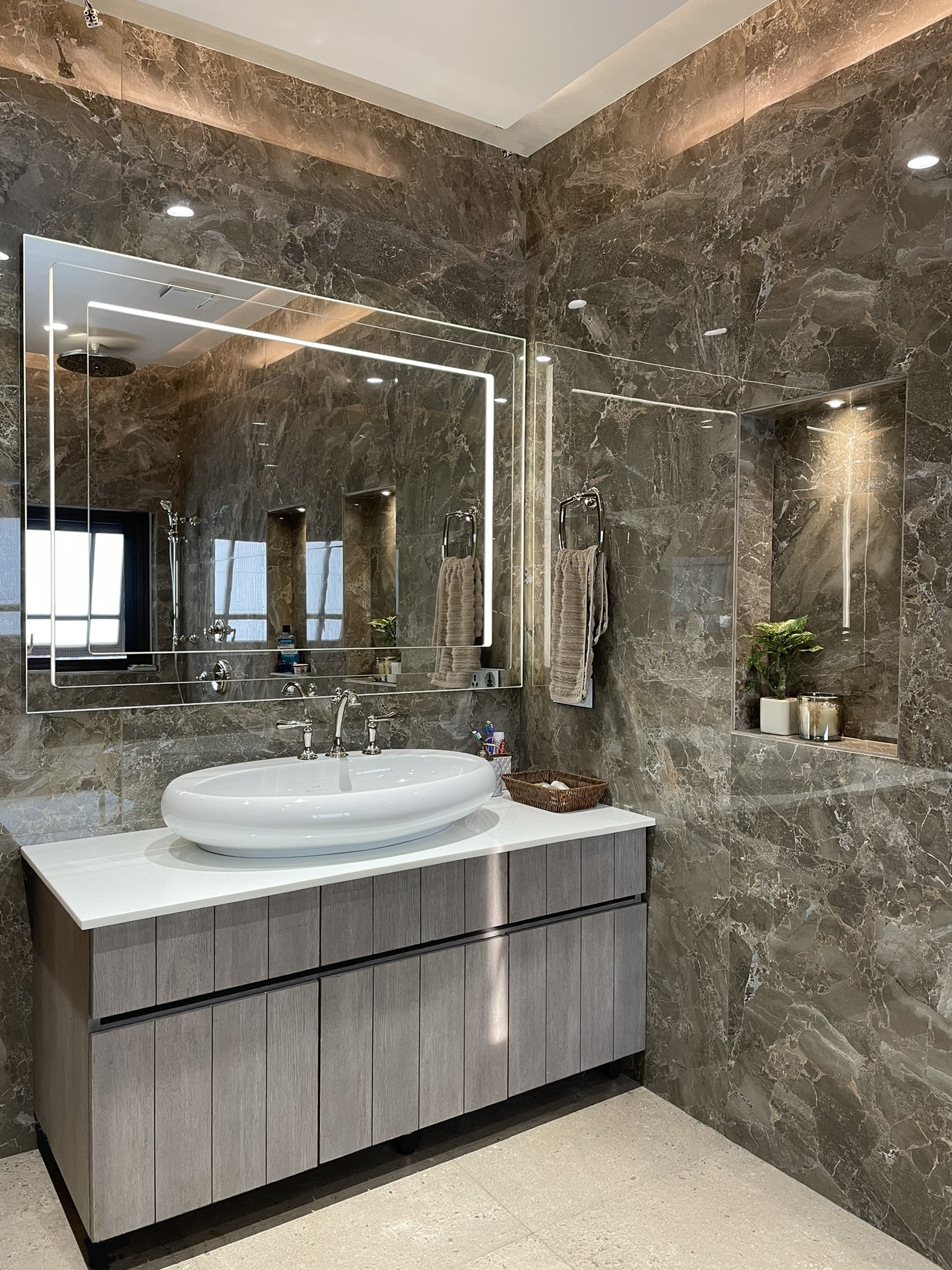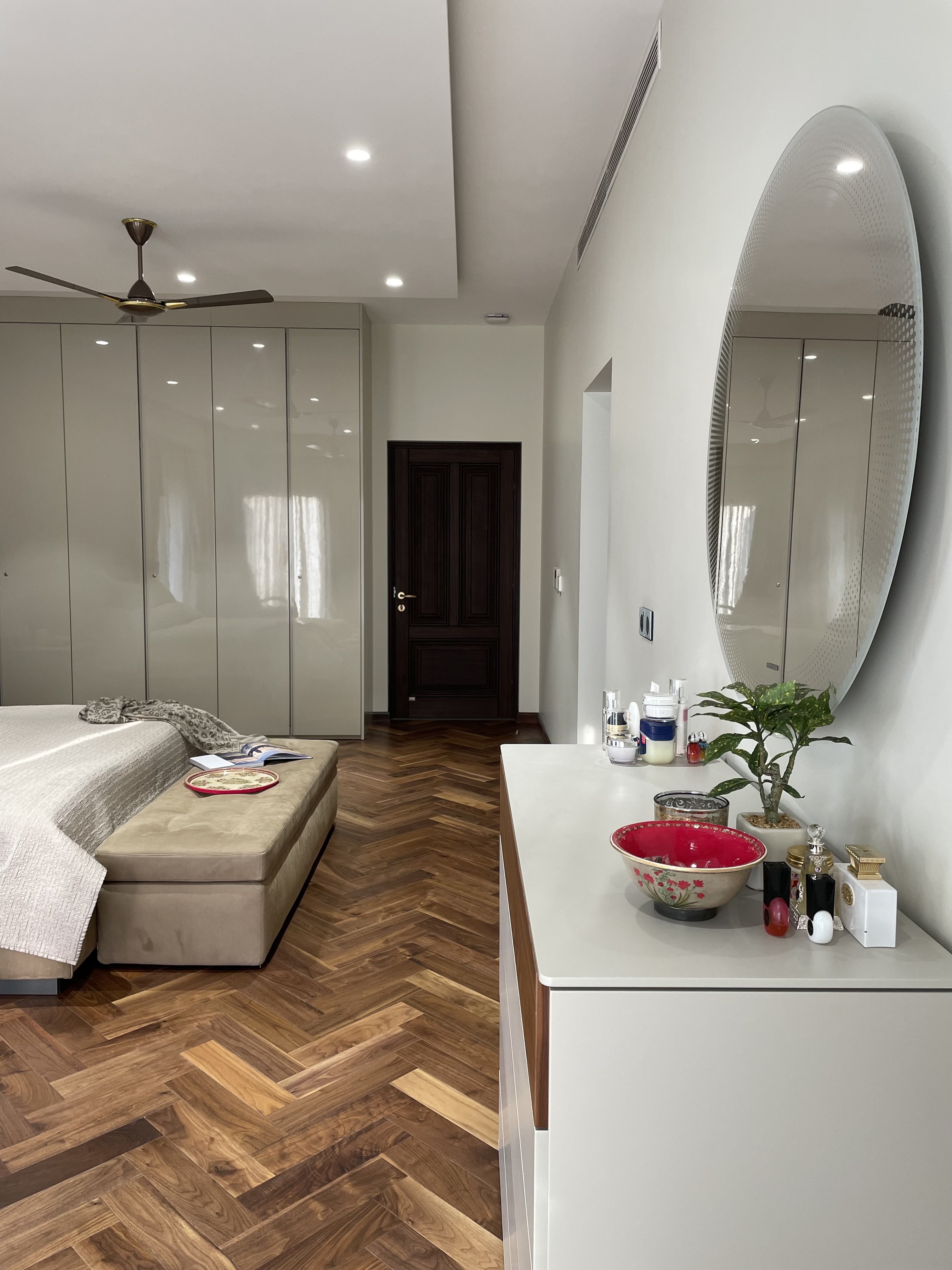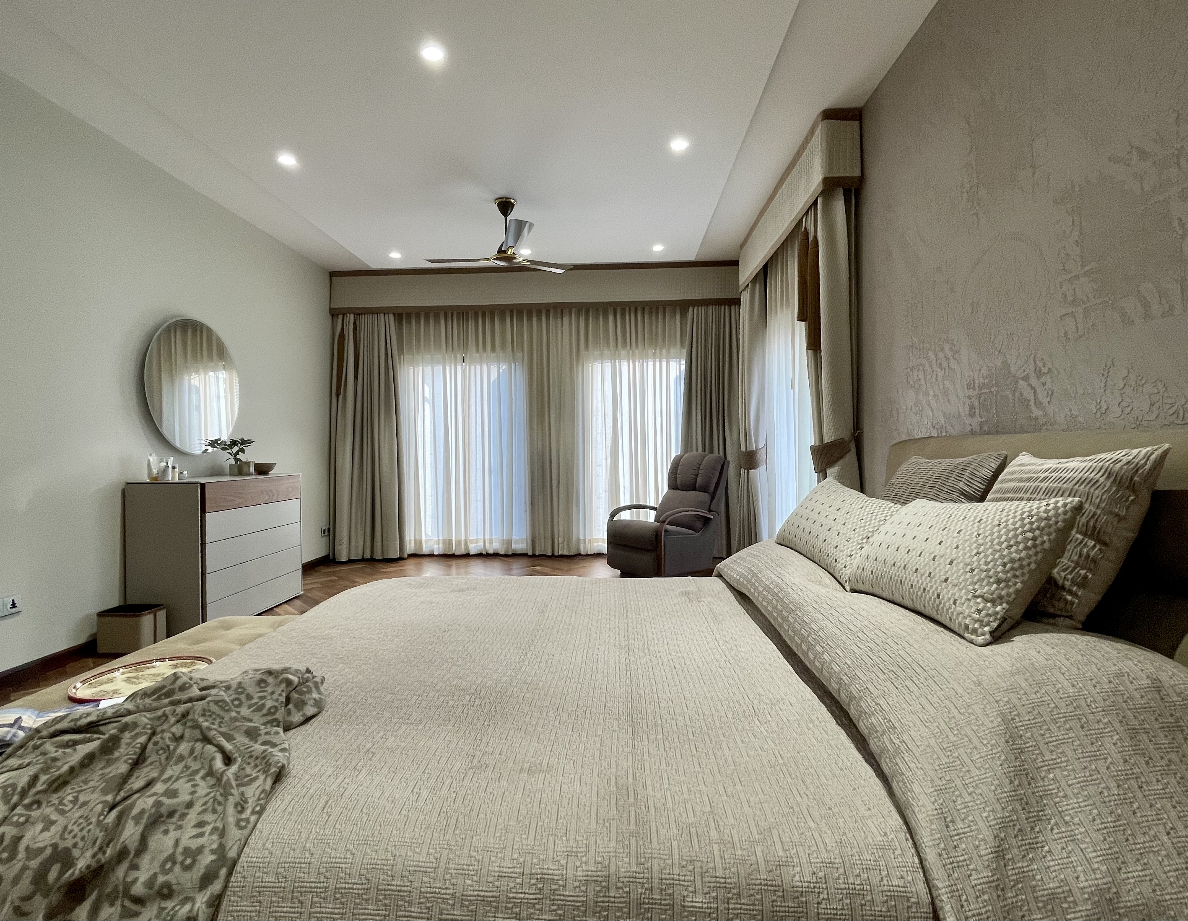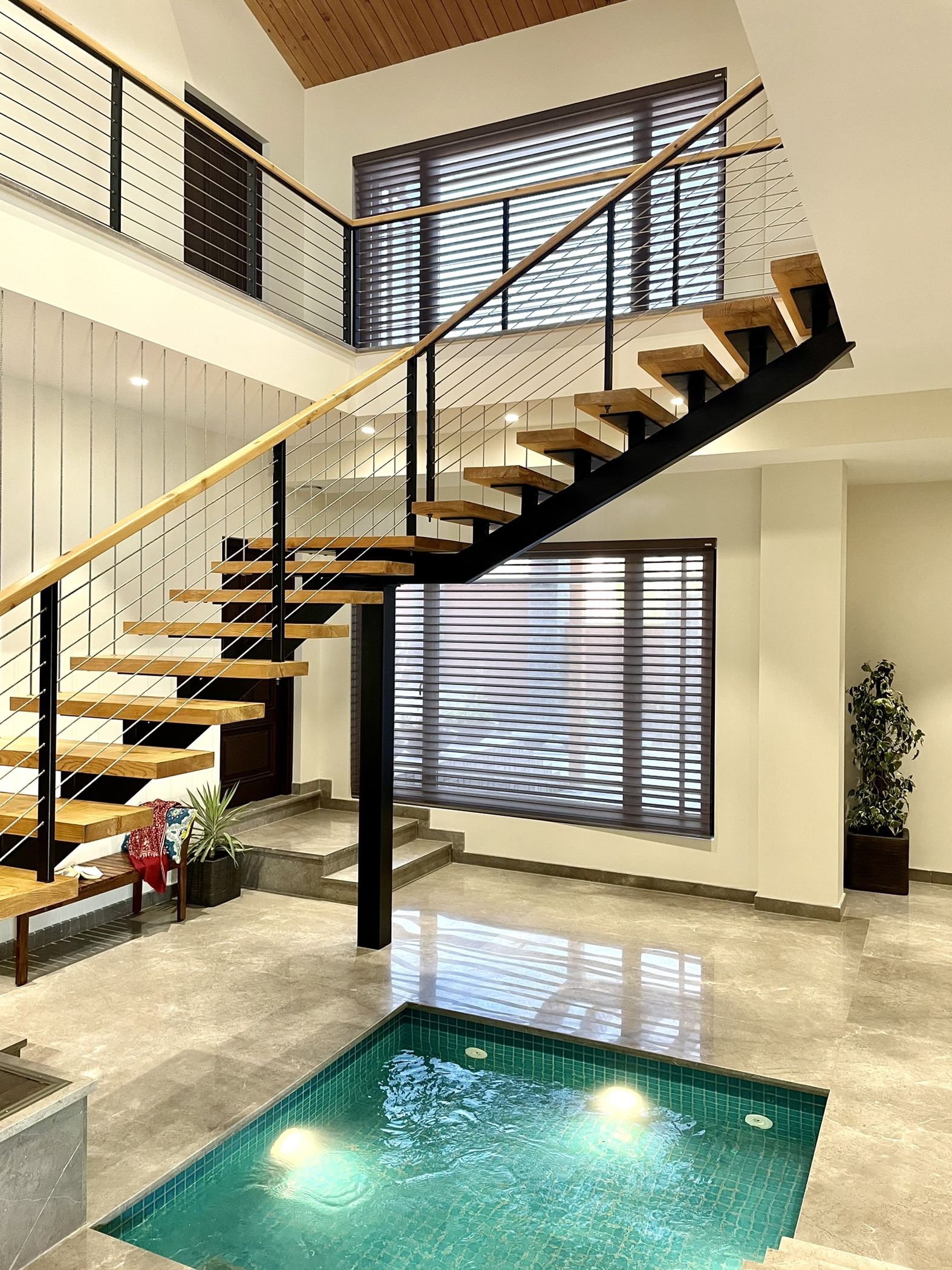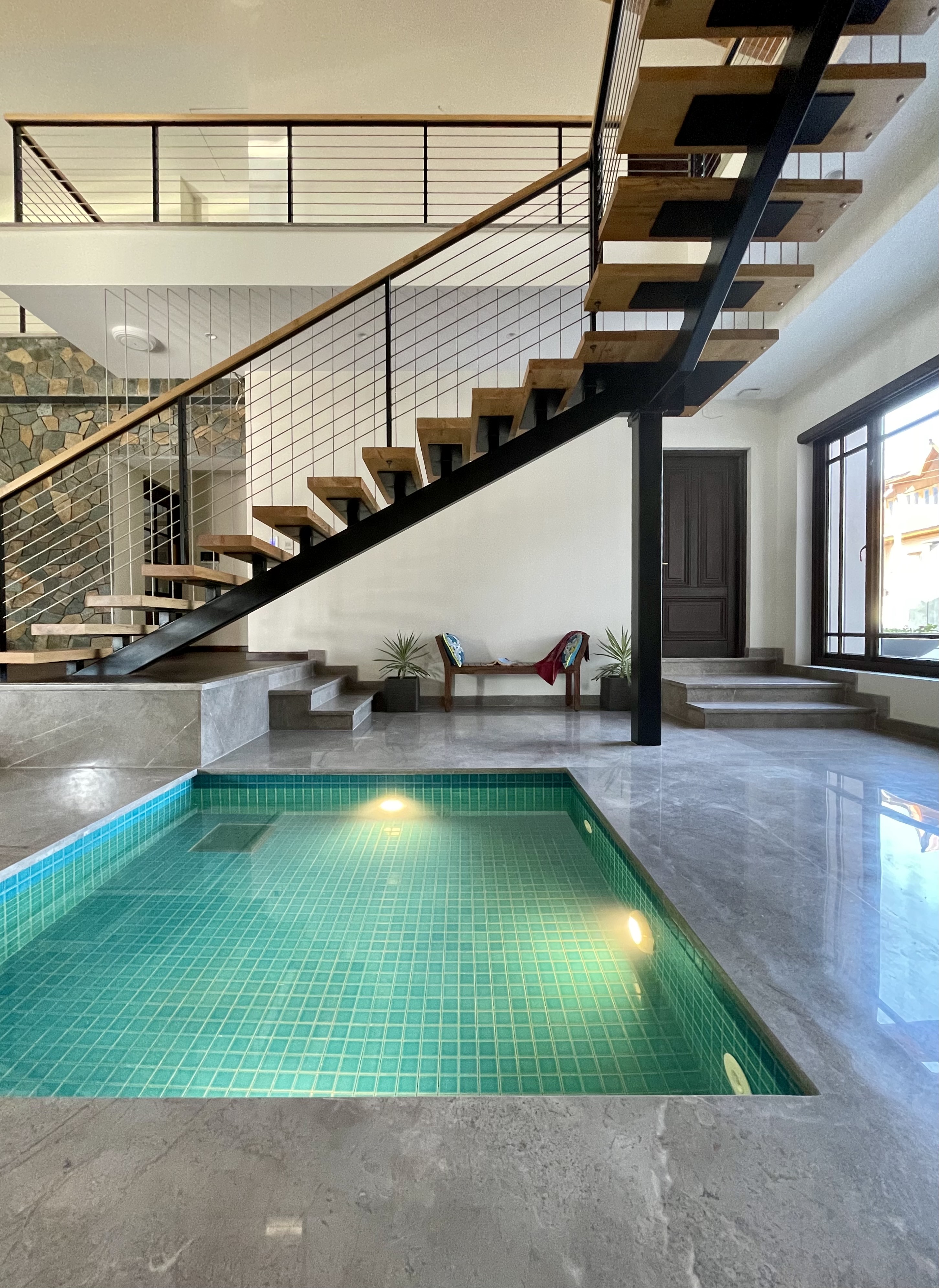 The whole house actually stimulates your senses and has a multisensory experience where we feel the tactility of natural materials like that of wood and stone. The sound of water from the water body in the living area is no less music to one’s ears. The fragrance of plants and indoor landscape is a refreshing feeling. The visual experience through interiors and aesthetics of the house goes as a default.