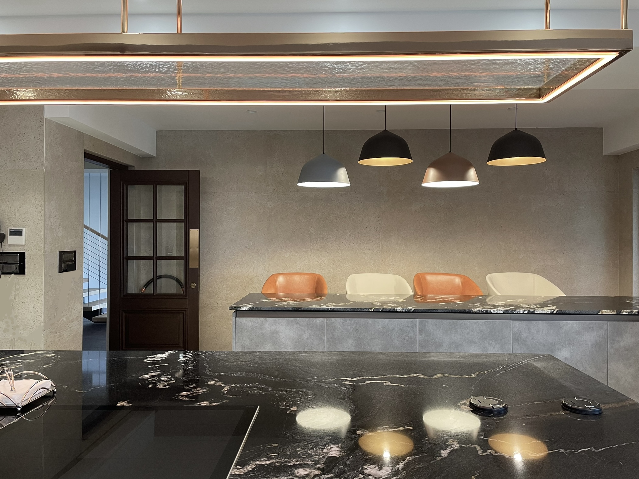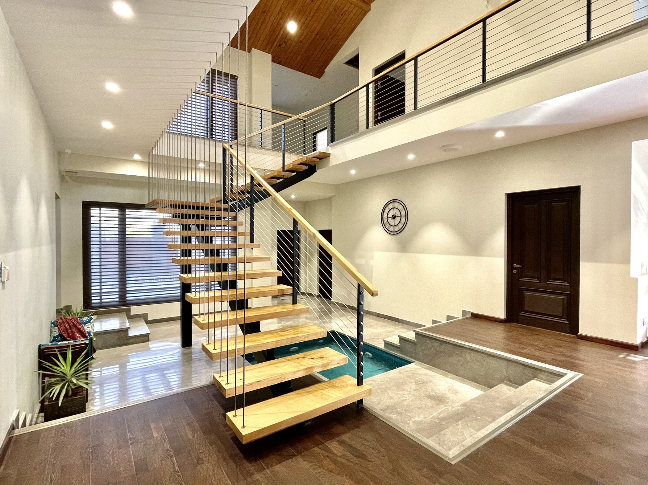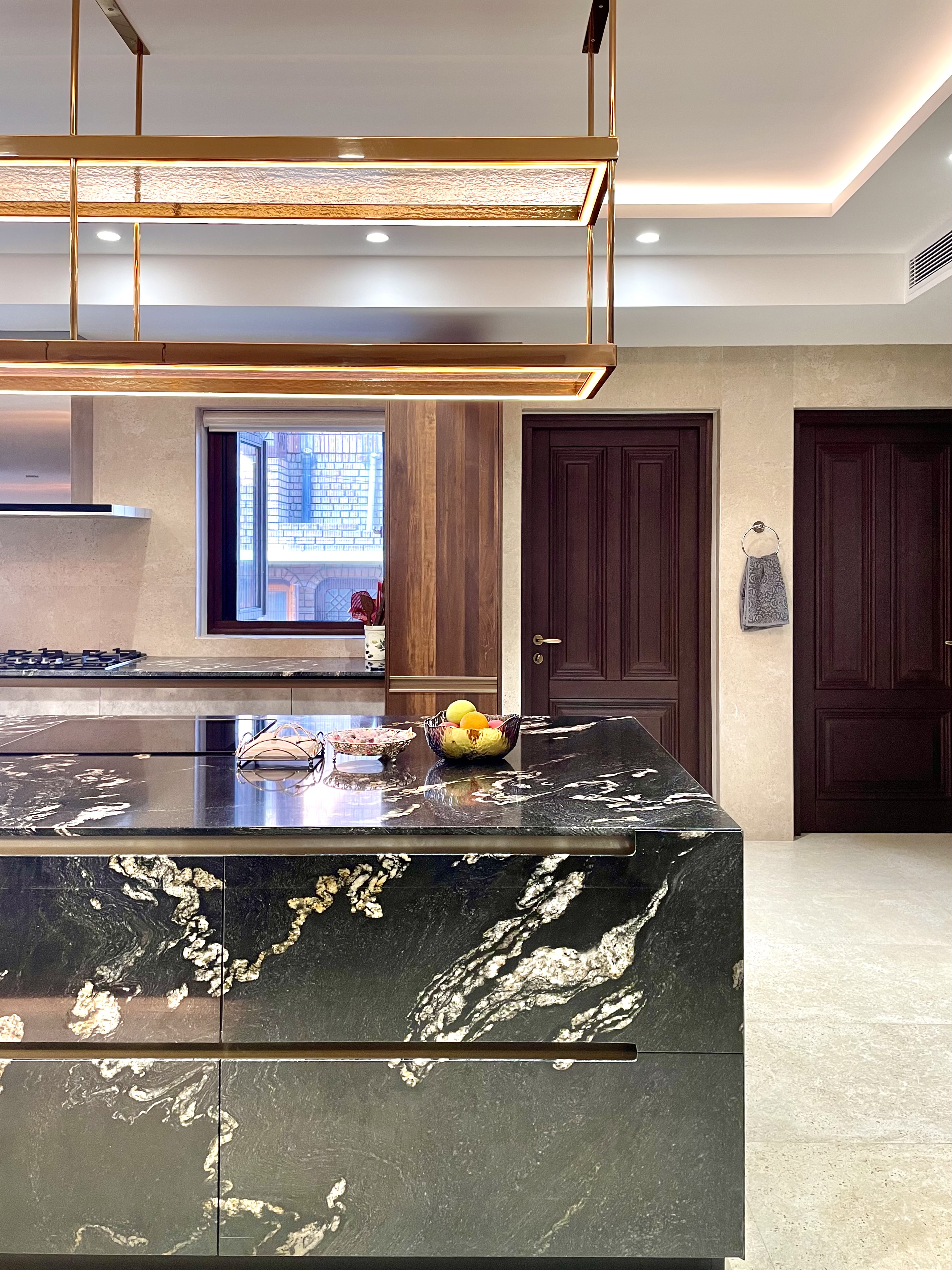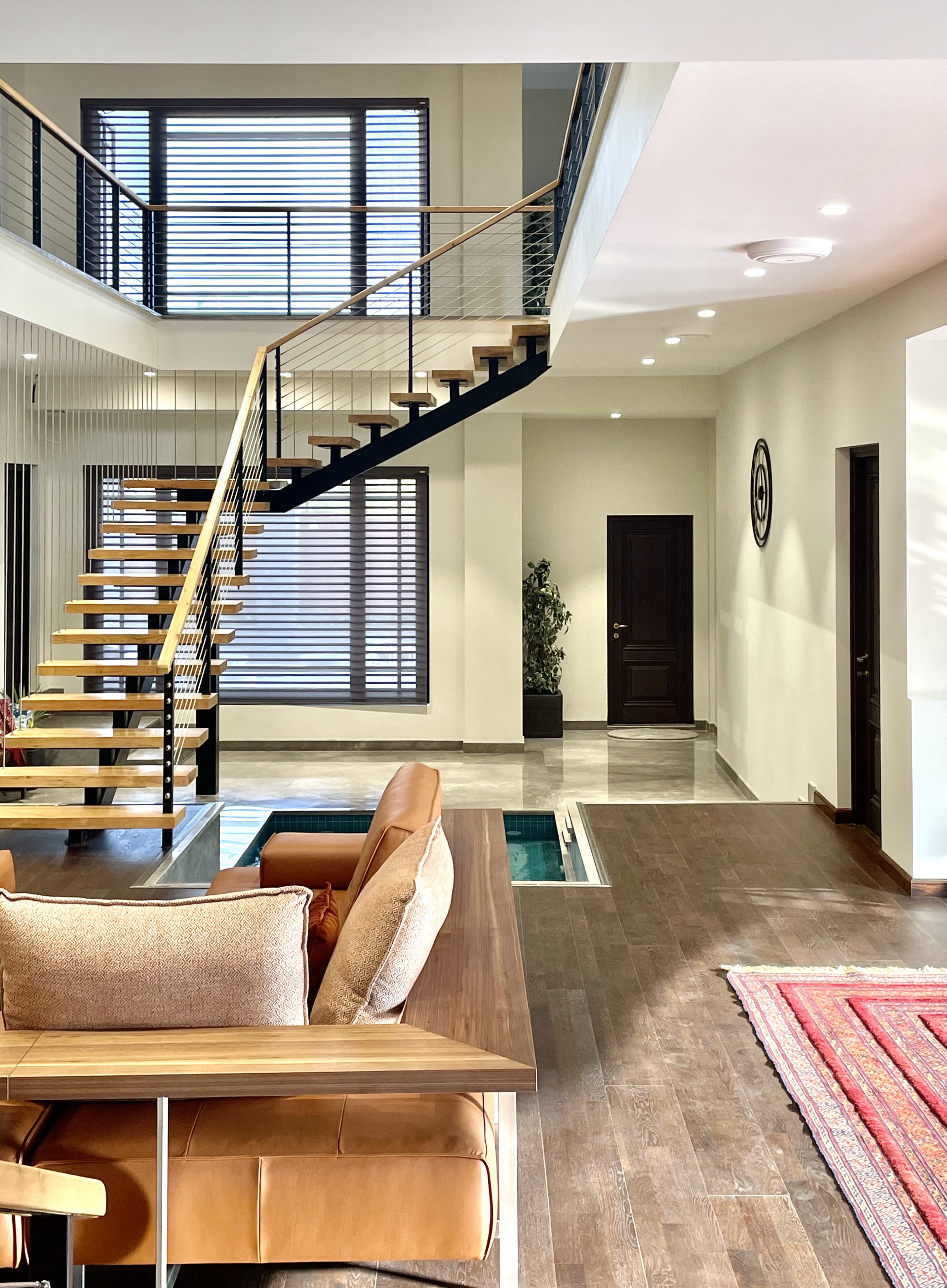Due to the massive scale of the house, the whole area was broken into multiple levels to create variety of spaces and pause pockets inside.