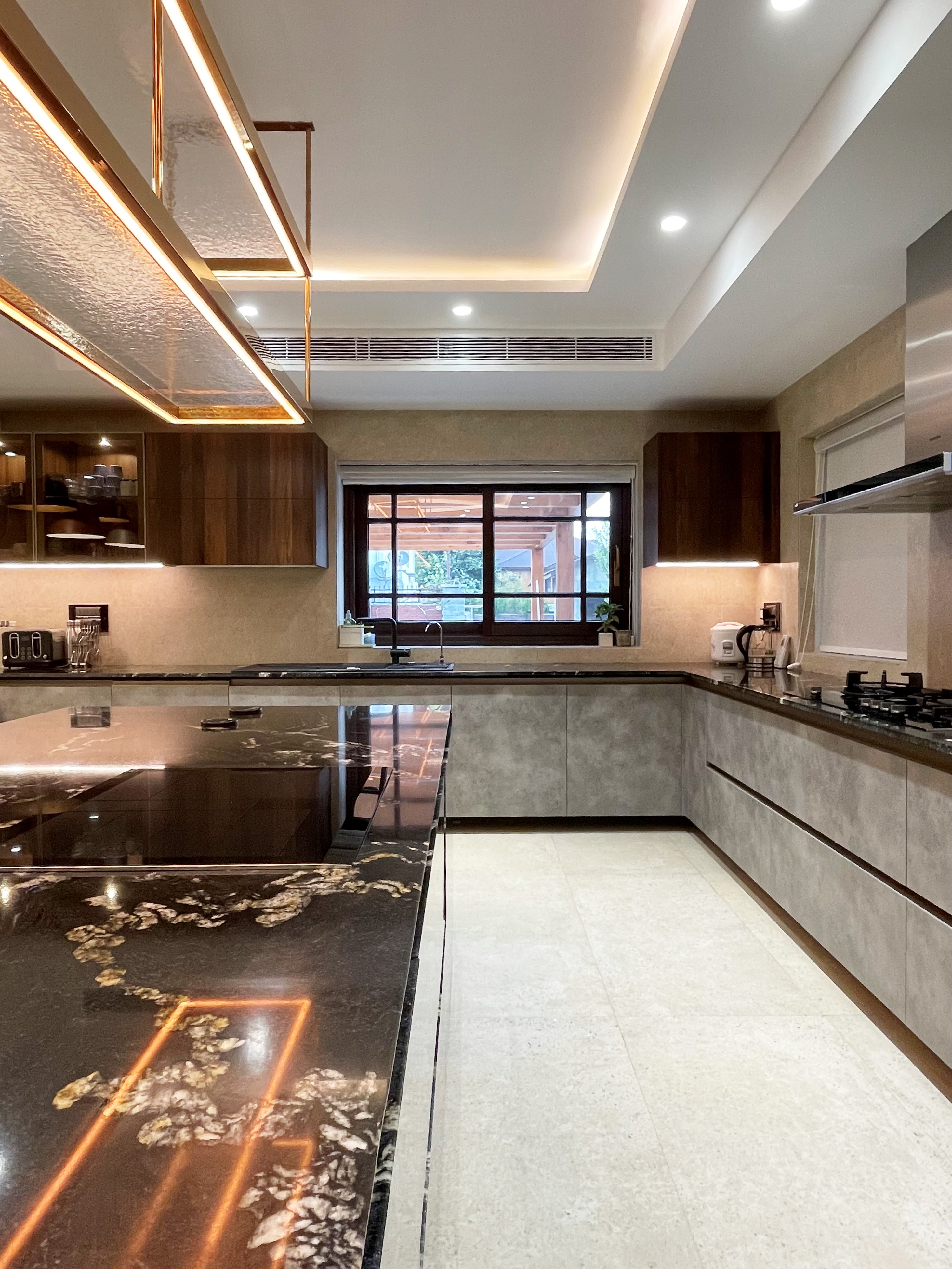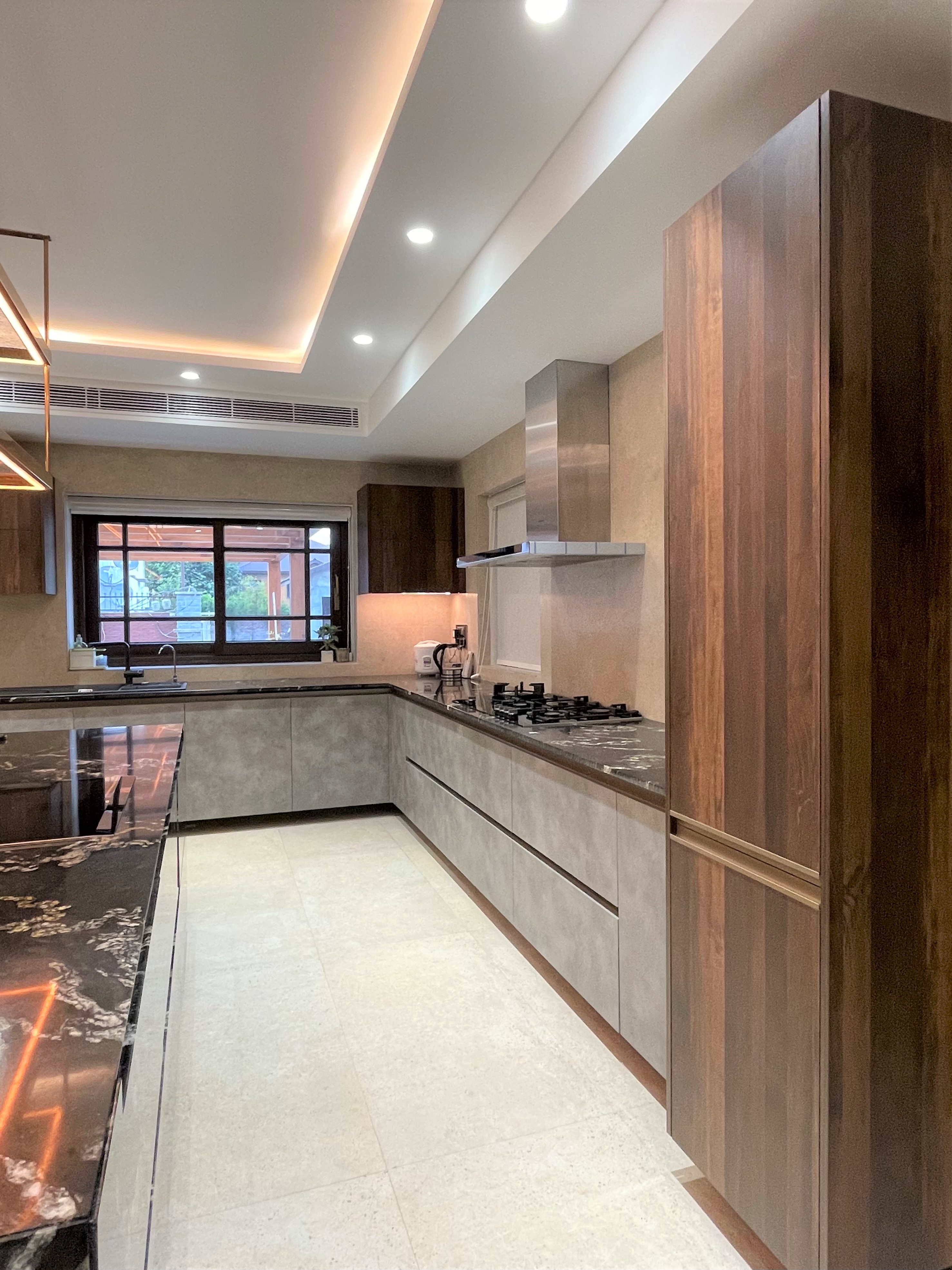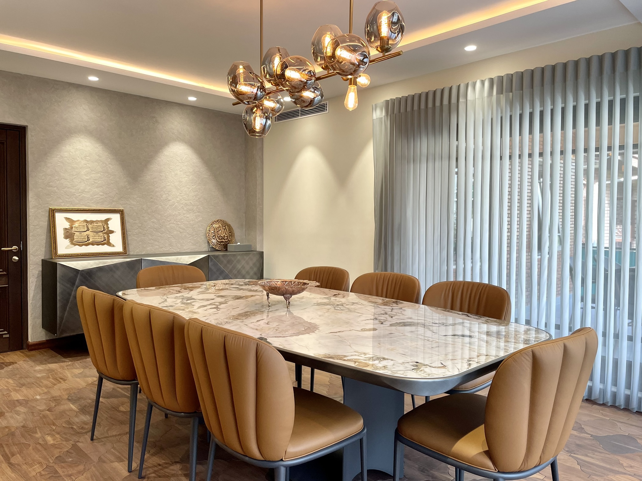 Due to the massive scale of the house, the whole area was broken into multiple levels to create variety of spaces and pause pockets inside.
