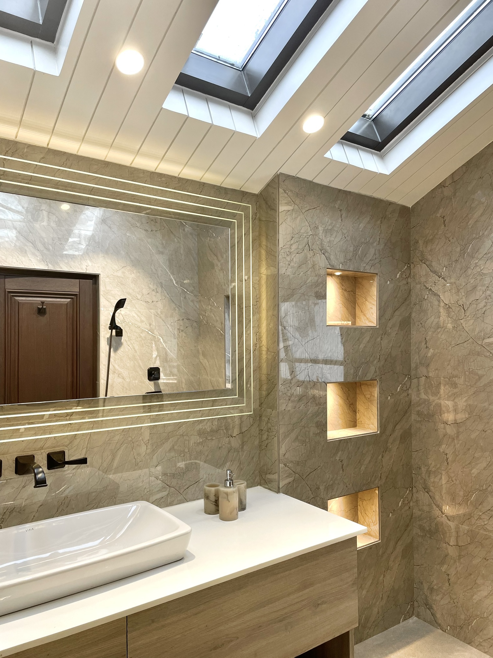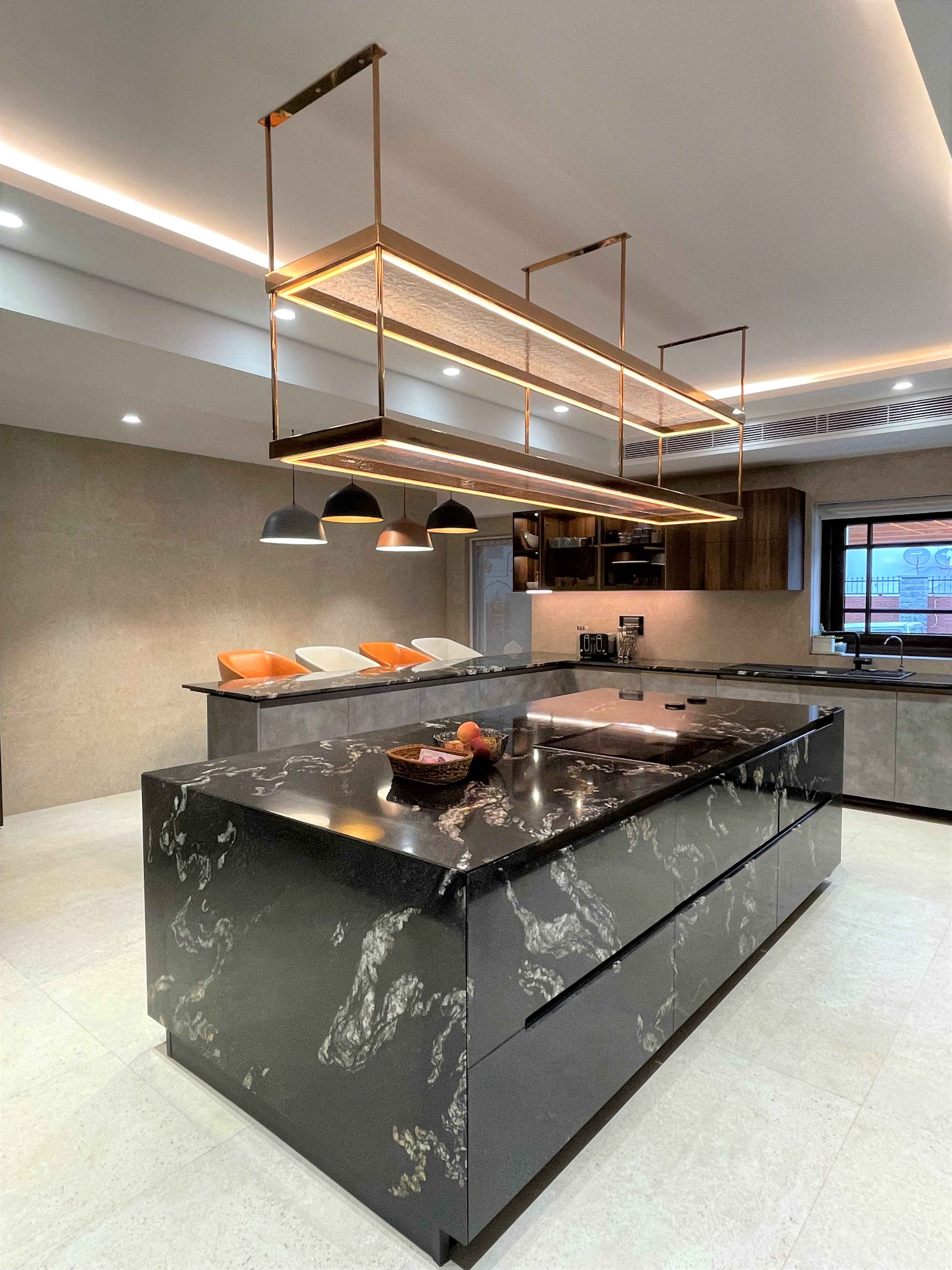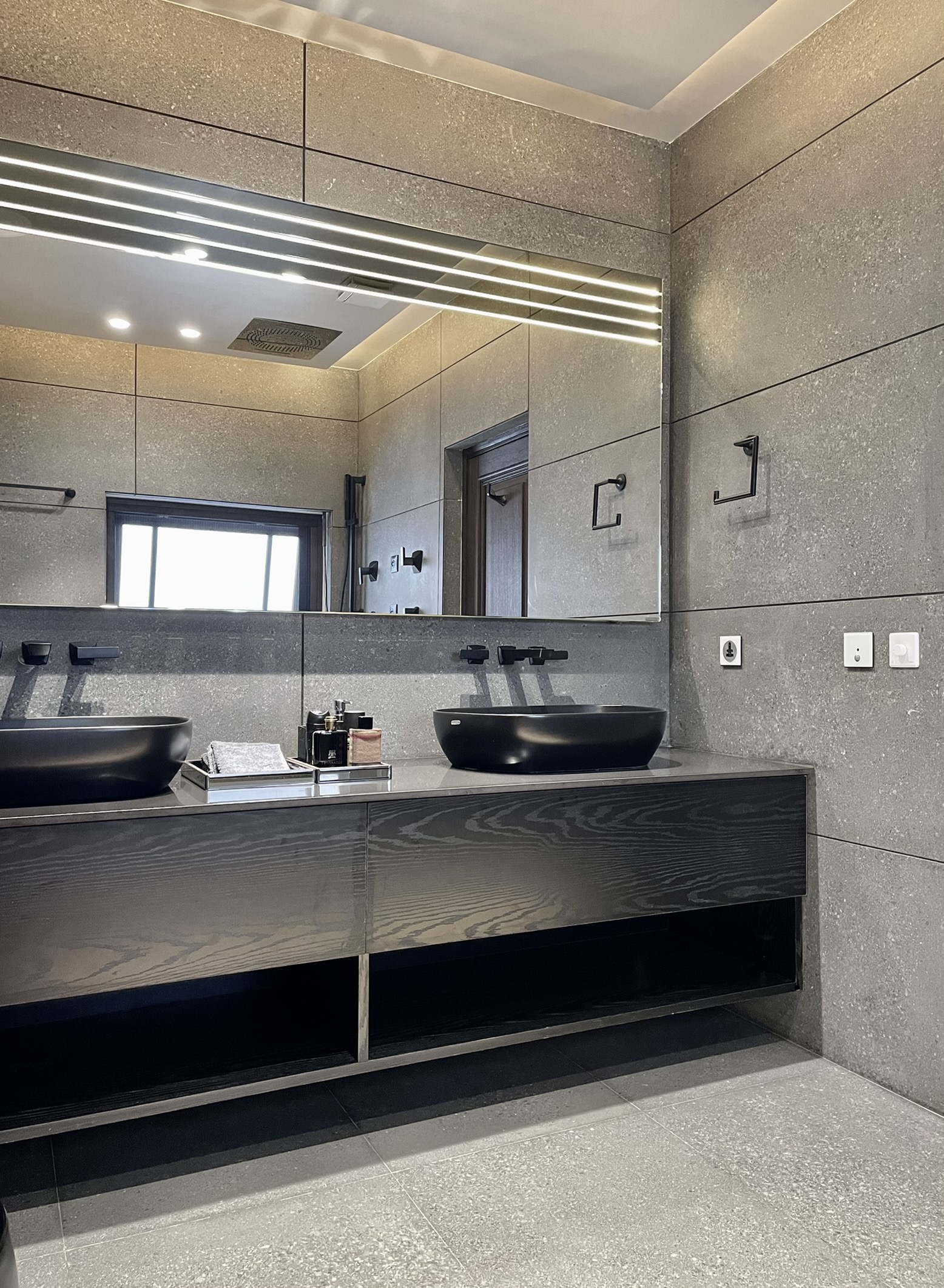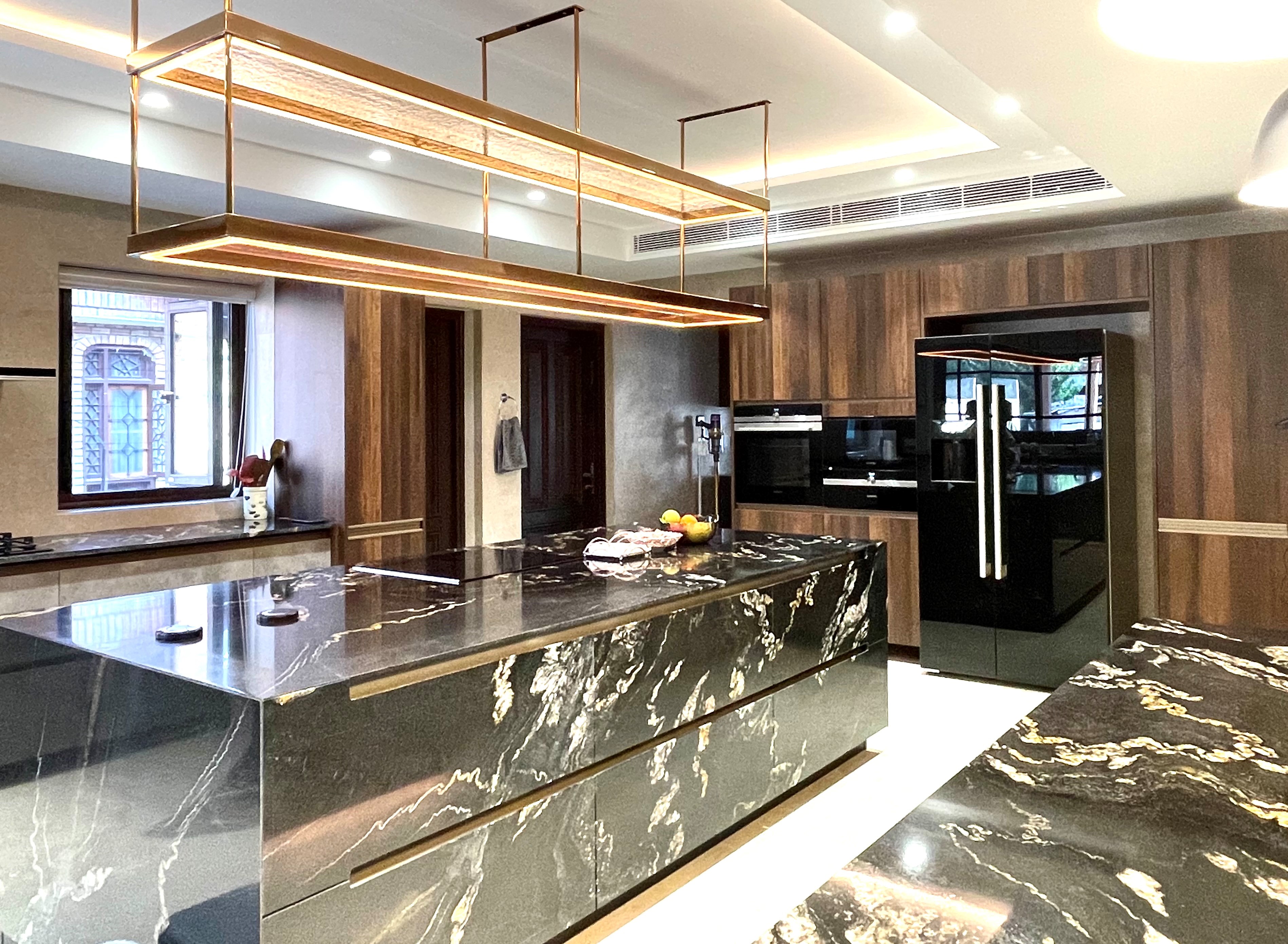 Due to the massive scale of the house, the whole area was broken into multiple levels to create variety of spaces and pause pockets inside.