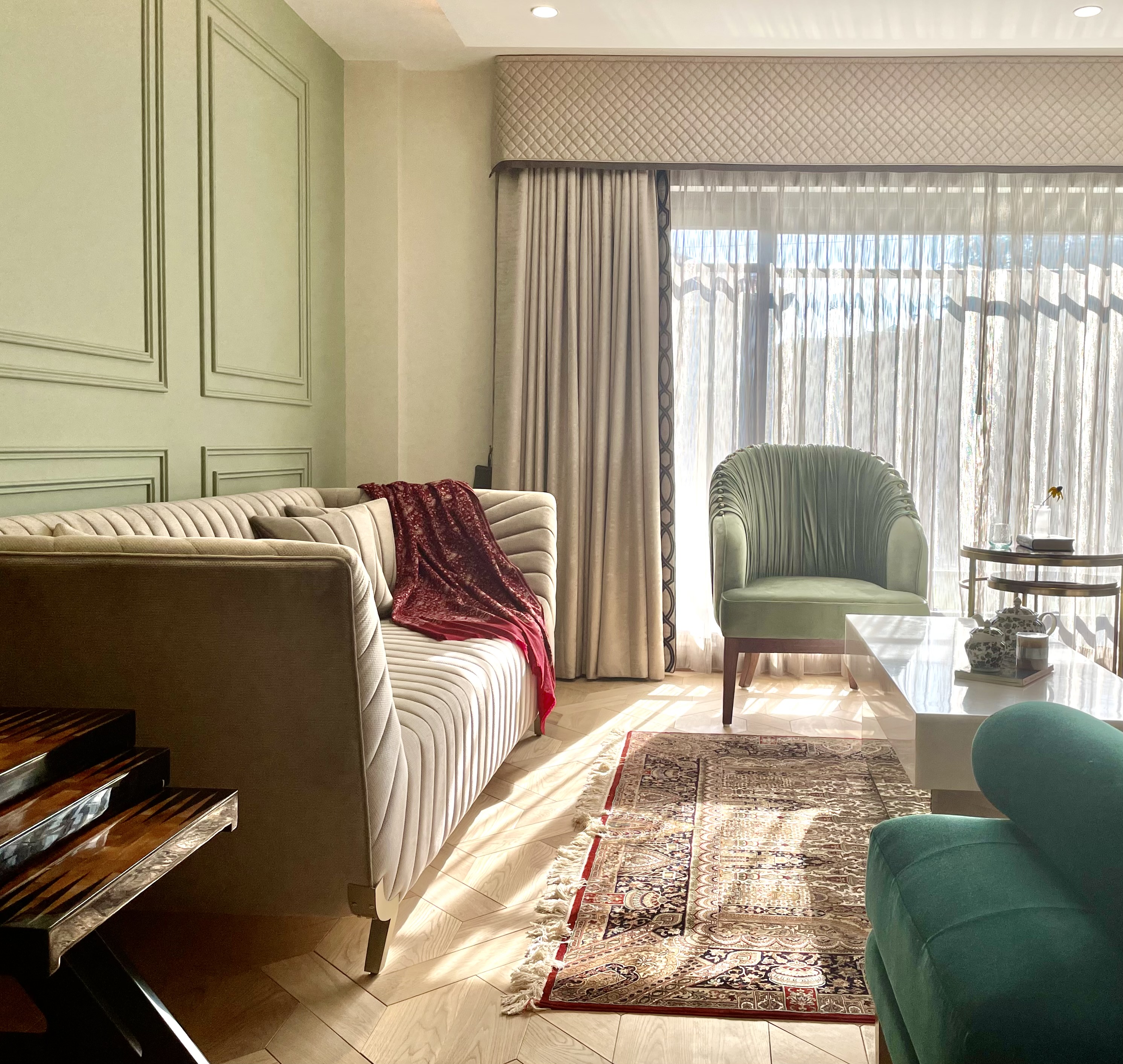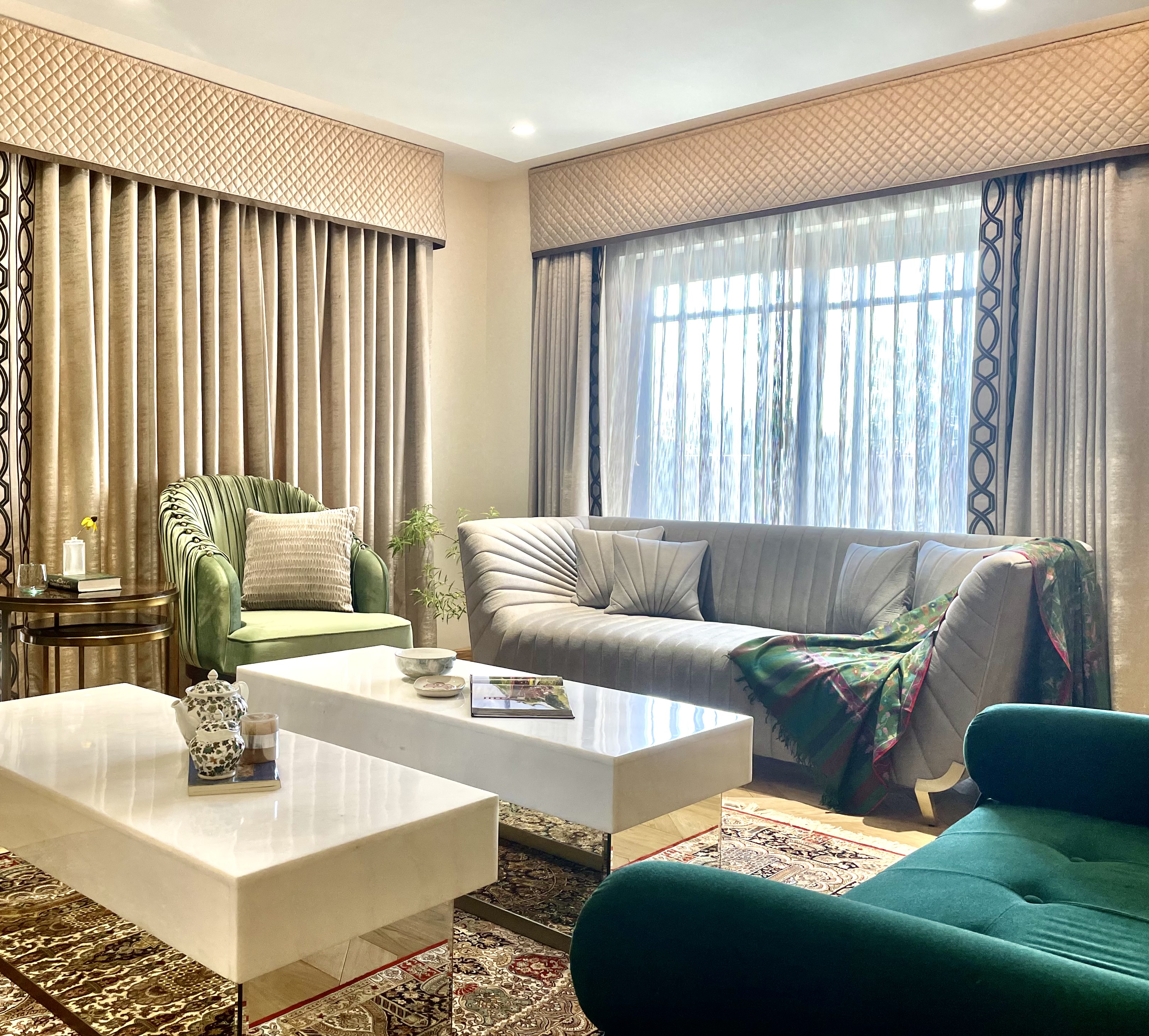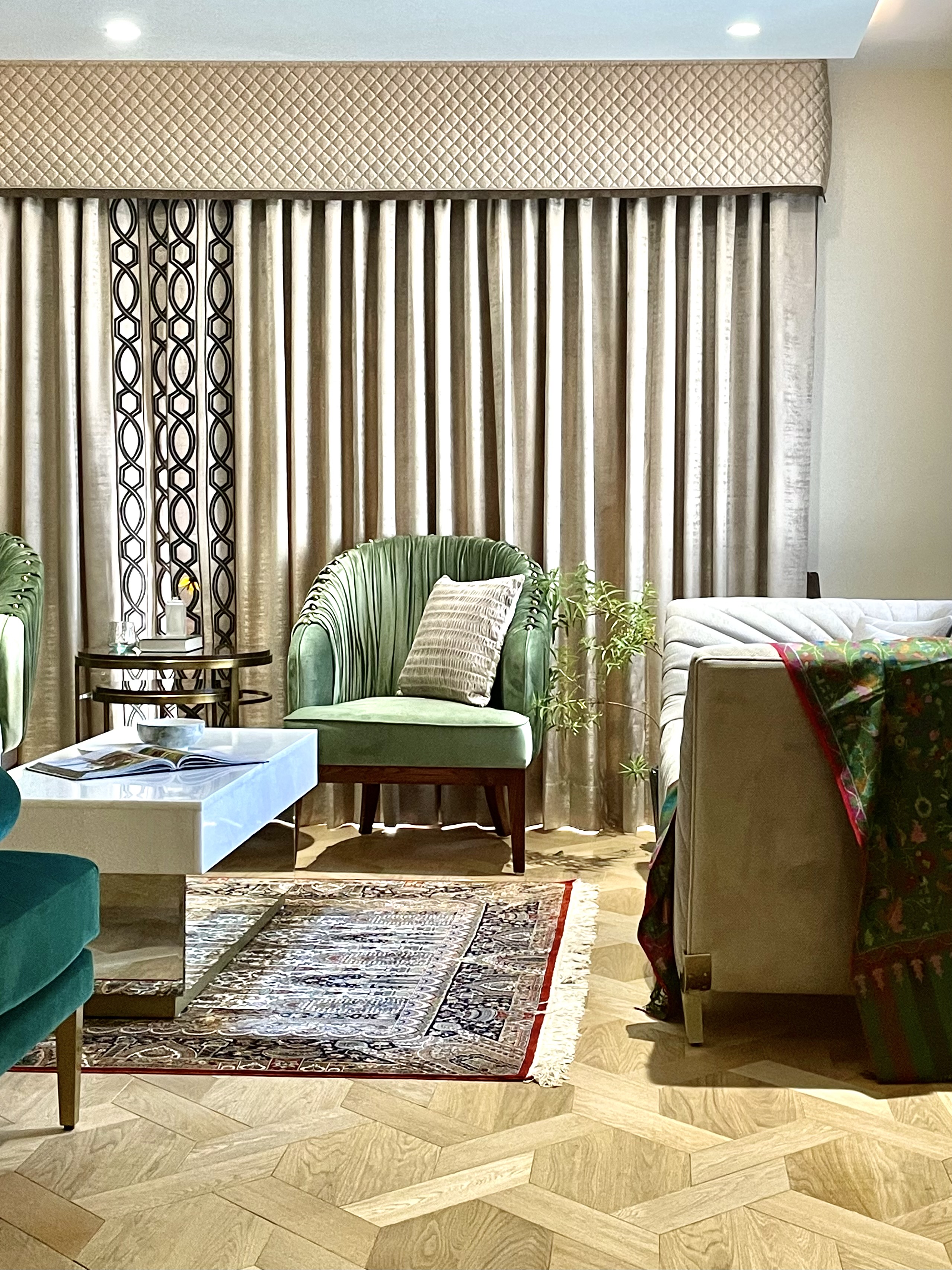 The concept revolves around creating a dialogue between the building and the landscape by providing multiple inside-outside connections through large windows, transitional spaces, decks and terraces. Exposed timber trusses and large volumes of double-height family areas add to the grandeur of this house. All throughout this large house, a visual connection is maintained to keep the interaction amongst the users alive. Keeping the harsh cold climate of Kashmir in mind, sustainable strategies to combat cold weather are adopted like insulated cavity walls, floor heating etc. This house has a large double-height living area with exposed timber roof and an overlooking family area on the first floor. The basement is in two levels which houses the gym, home theatre and a large hall used for gatherings and functions. The ground floor has a formal drawing room, a prayer room, kitchen and a dining room that opens to a deck with a place for barbeques.